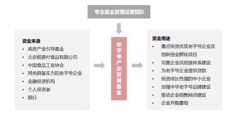 充分發(fā)揮金融資本的力量,進(jìn)一步發(fā)揮老字號(hào)企業(yè)的優(yōu)勢(shì)資源,提升中華老字號(hào)的品牌價(jià)值,助推老字號(hào)企業(yè)創(chuàng)新發(fā)展,促進(jìn)老字號(hào)產(chǎn)業(yè)健康發(fā)展。以中國(guó)食品工業(yè)協(xié)會(huì)為主導(dǎo),引入政府產(chǎn)業(yè)引導(dǎo)基金、金融投資機(jī)構(gòu)、銀行、北京稻香村和其他老子號(hào)企業(yè)及個(gè)人投資者等建立老字號(hào)產(chǎn)業(yè)發(fā)展基金,由專業(yè)基金管理團(tuán)隊(duì)負(fù)責(zé)運(yùn)營(yíng),主要用于投資優(yōu)質(zhì)老字號(hào)企業(yè)及創(chuàng)新創(chuàng)業(yè)孵化項(xiàng)目、為老字號(hào)企業(yè)提供金融貸款,完善企業(yè)供應(yīng)鏈體系建設(shè)、企業(yè)并購(gòu)重組等。
