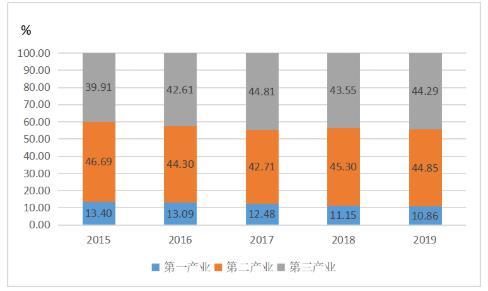 2015-2019年三次產(chǎn)業(yè)增加值占國內(nèi)生產(chǎn)總值比重