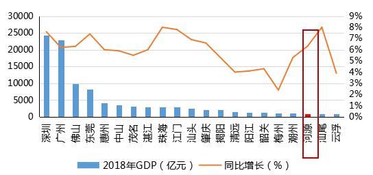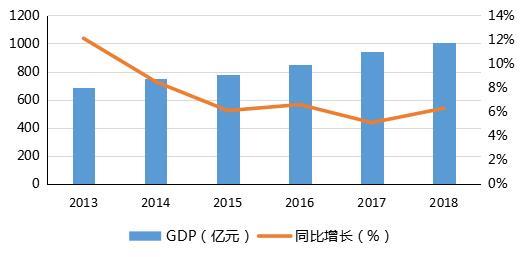 圖2 河源市2013年至2018年GDP及增速情況