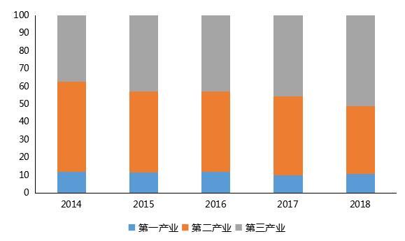 圖3 河源市2014至2018年三次產(chǎn)業(yè)結(jié)構(gòu)比重情況