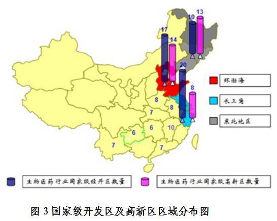 三、從各地區(qū)生物醫(yī)藥行業(yè)國家級(jí)經(jīng)濟(jì)開發(fā)區(qū)和高新區(qū)分布來看,仍以長三角、環(huán)渤海和東北地區(qū)為主