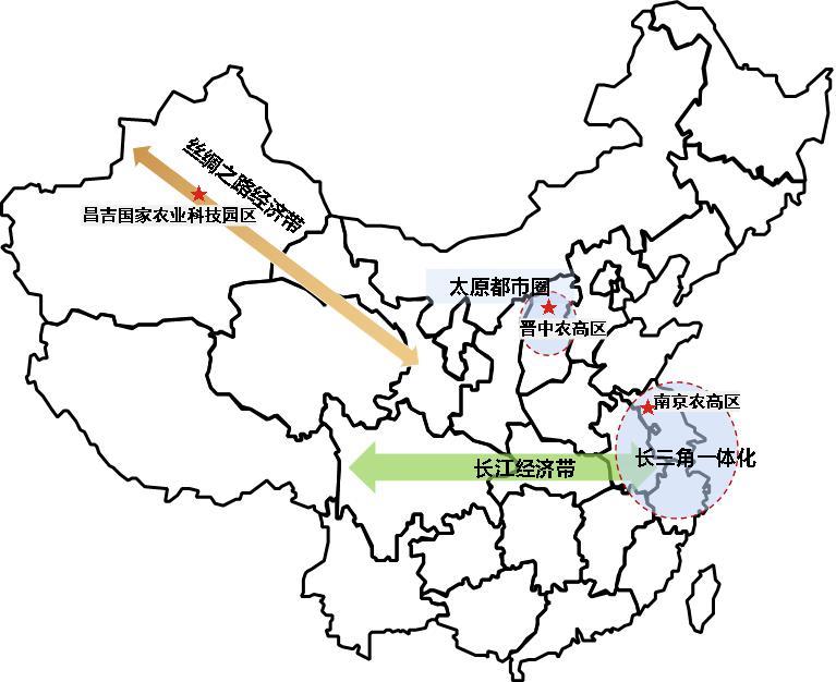 小結(jié):從區(qū)位條件來講,南京農(nóng)高區(qū)位于東部沿海發(fā)達(dá)地區(qū)和長三角經(jīng)濟(jì)圈核心區(qū)域,與晉中農(nóng)高區(qū)、昌吉國家農(nóng)業(yè)科技園區(qū)相比,區(qū)位優(yōu)勢(shì)和國家戰(zhàn)略疊加效應(yīng)更加明顯。