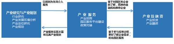 以產(chǎn)業(yè)研究與產(chǎn)業(yè)規(guī)劃為先導,鎖定和跟蹤一批重點園區(qū),為其提供深入產(chǎn)業(yè)服務,解決其發(fā)展過程中急需解決的問題;在服務園區(qū)及其相關企業(yè)的過程中,為質(zhì)地優(yōu)良的園區(qū)和企業(yè)提供投融資服務,以實現(xiàn)園區(qū)、被服務企業(yè)和公司持續(xù)共贏為基本特征,最終將公司發(fā)展成橫跨全產(chǎn)業(yè)鏈輕資產(chǎn)產(chǎn)業(yè)服務商。